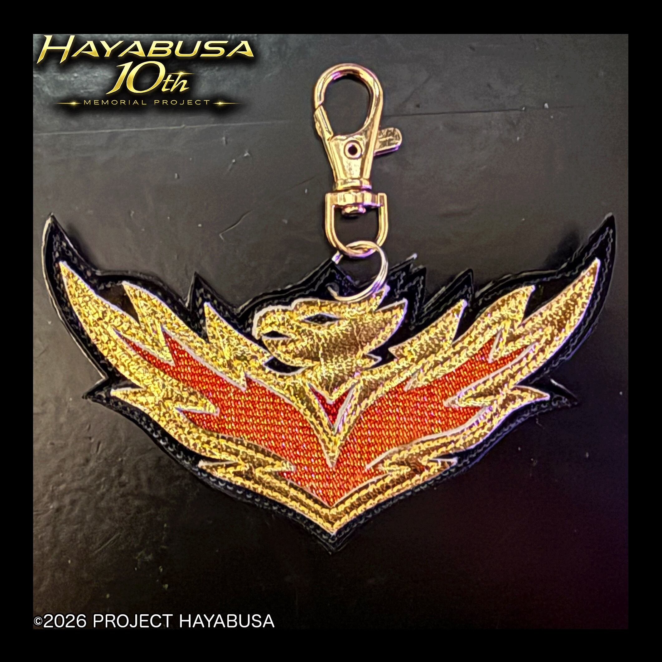 ハヤブサオフィシャルマスク職人・中村ユキヒロ氏が手掛けるハヤブサマスク。その額部分にセットアップされているフェニックスエンブレムを原寸大キーホルダー化!